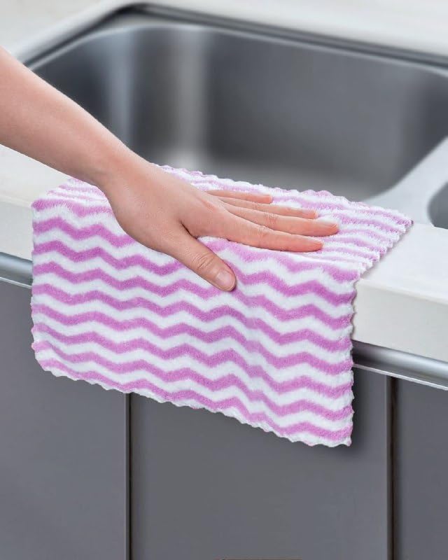 - مجموعة كبيرة: تتضمن 10 مناشف تنظيف بنمط شيفرون زهري وأبيض جذاب، مما يوفر قيمة ممتازة ويضمن لك دائمًا الحصول على منشفة نظيفة جاهزة