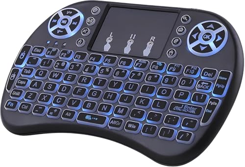 Generic - كيبورد لاسلكي صغير بلوحة لمس، وإضاءة خلفية زرقاء، تحكم في الوسائط المتعددة للتلفزيون الذكي والكمبيوتر