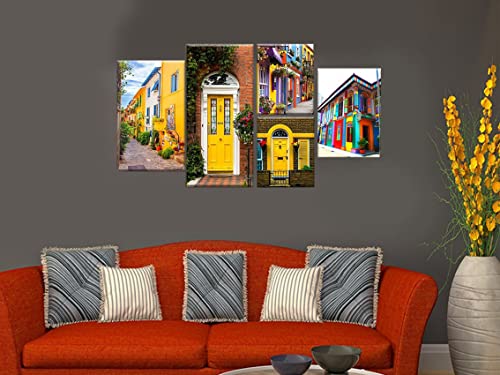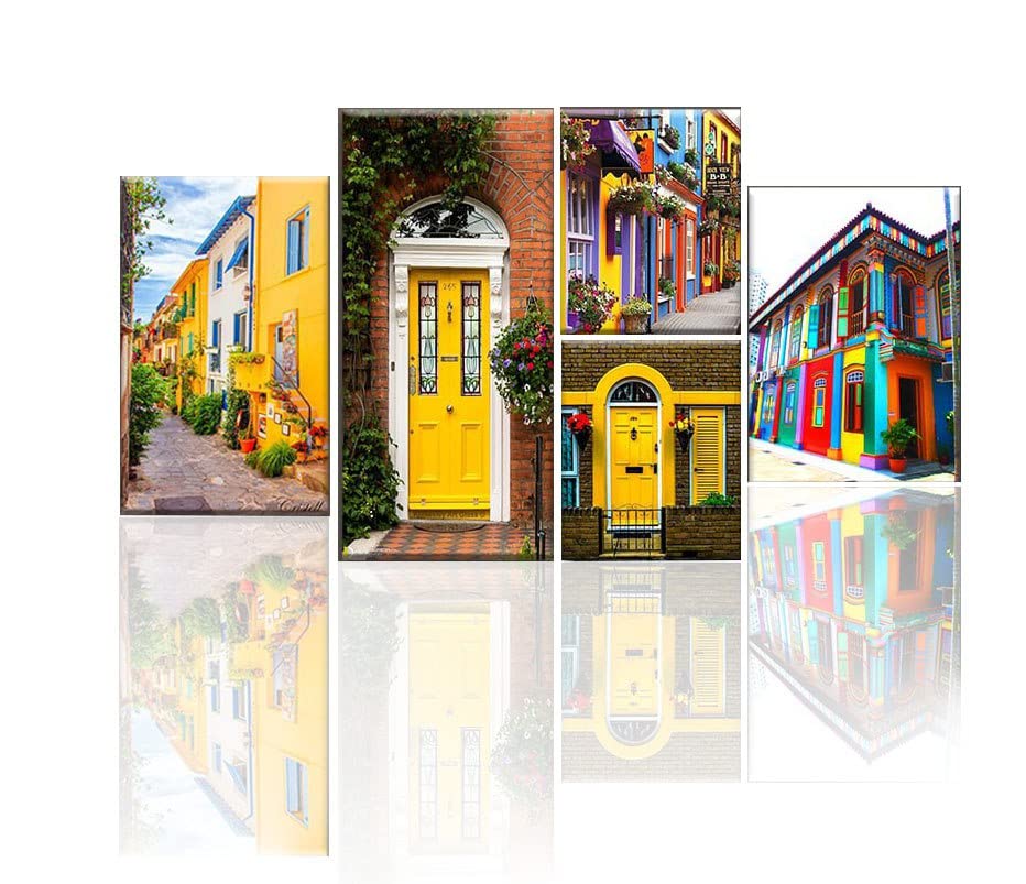 Generic - تابلوه عصري مربع الشكل بطبعة منازل كلاسيكية قديمة - 5 قطع، متعدد