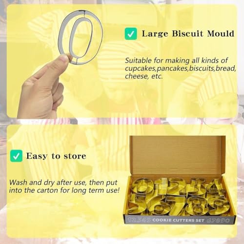 - تتضمن قطاعات أرقام مصنوعة من الاستانلس ستيل لكتابة على الكب كيك والكوكيز والتورت والجاتوهات.