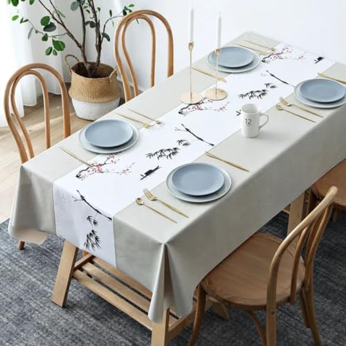 Generic - مفرش طاولة بلاستيك مستطيل الشكل مع طبعة زهور الكرز، 2.28 × 1.52 م، رمادي