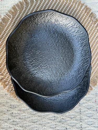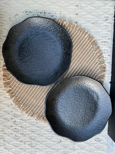 Generic - أطباق تقديم دائرية من الميلامين بتصميم مزخرف، لون أسود