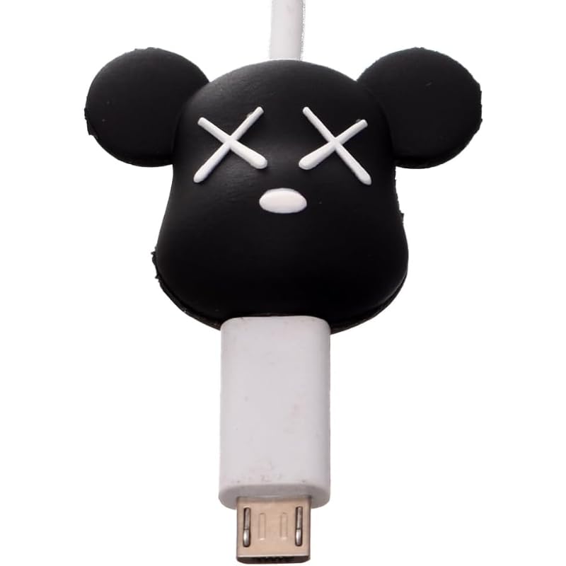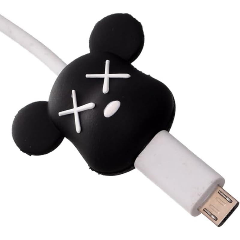Generic - واقي كابل من السيليكون لسلك الشاحن بتصميم على شكل ميكي ماوس، لون أبيض/ أسود