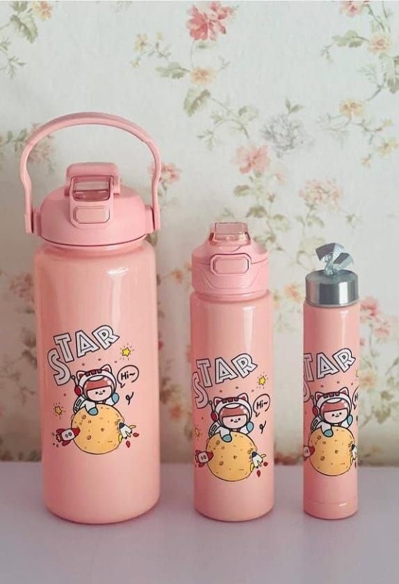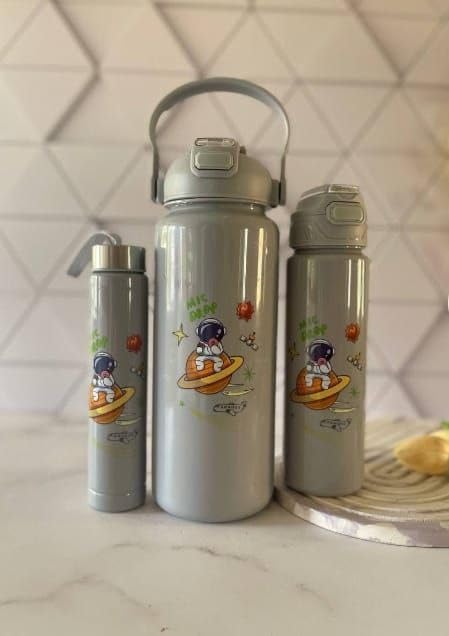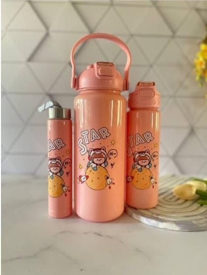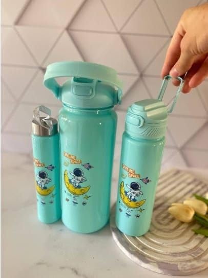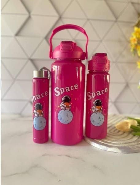 - طقم زجاجات مياه 3 قطع يضم زجاجة جامبو سعة 3.3 لتر، وزجاجة سعة 1.5 لتر، وزجاجة بسعة 700 مل.
