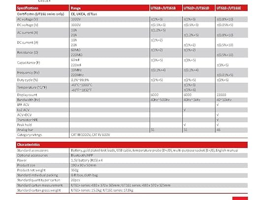 - جهاز قياس رقمي متعدد UT61D+ V1000، جهاز اختبار السعة والمقاومة والجهد الكهربي والتيار المتردد والمستمر