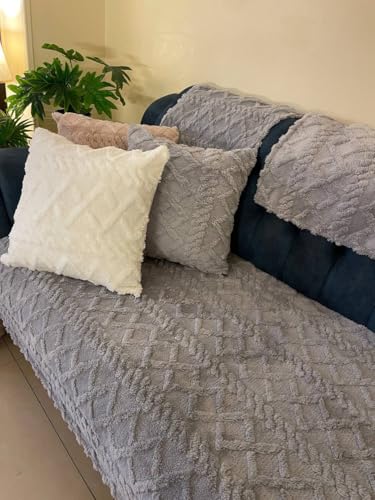 Generic - طقم غطاء كنبة قطيفة جاكار مقاس كبير 1.95 م × 90 سم، مقاس الكنبة المتوسطة 1.50 م × 90 سم، الكرسيين 80×80 سم، 7 أكياس مخدات، رمادي ومتعدد الألوان