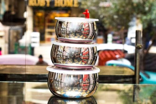 - الطقم يتكون من 3 قطع بمقاسات مختلفة: 12 سم، 14 سم، 16 سم، مما يوفر مرونة في حجم التخزين.