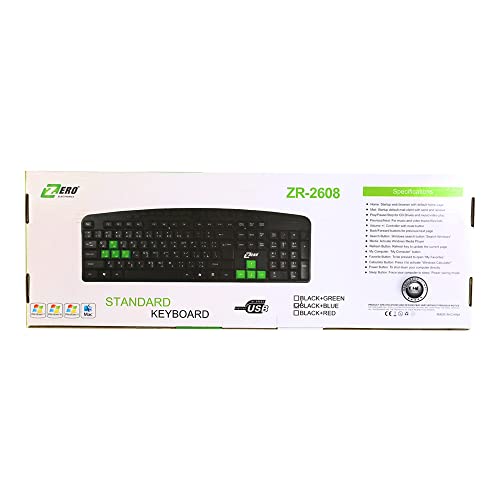Generic - لوحة مفاتيح مزودة بمنفذ USB وسائط متعددة من زيروZR - طراز 2608، متعدد الألوان