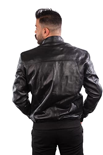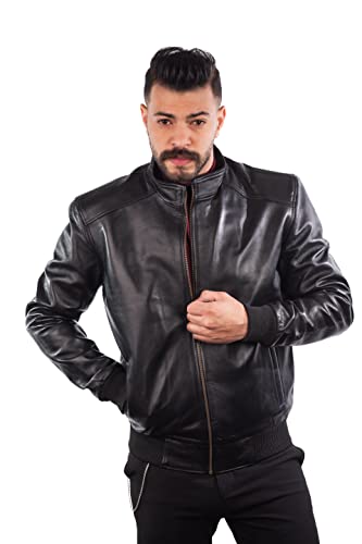 Generic - جاكيت من الجلد الطبيعي المصري, أسود, L، للرجال