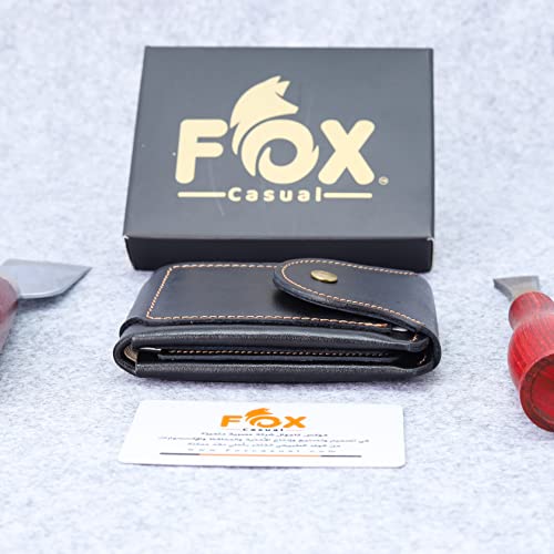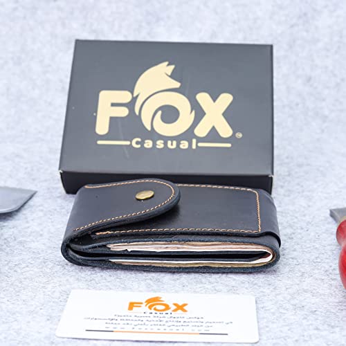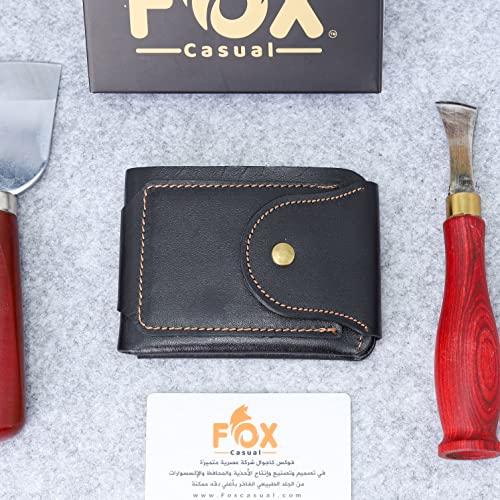 فوكس كاجوالFox Casual - محفظة جلد طبيعي كاجوال مصنوعة يدويا للرجال بسعة كبيرة مع خياطة قوية جدا وجلد بقر 100% و4 جيوب للكروت الشخصية الكروت البنكية اسود سادة