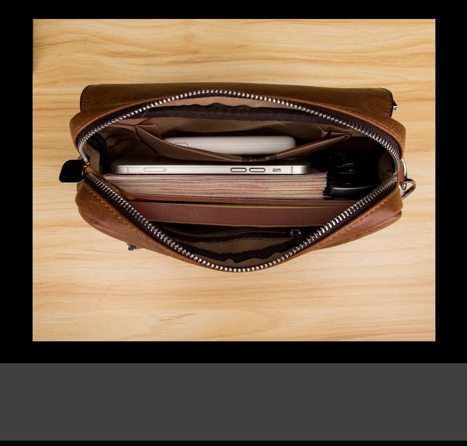 Generic - حقيبة يد وكتف رجالية من الجلد الأصلي، تصميم متعدد الاستخدامات مع سعة كبيرة وجيوب تنظيمية - أنيقة للأعمال ومثالية للسفر
