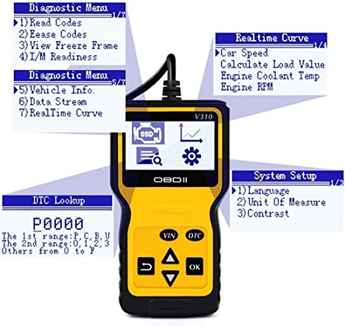 - سهلة التشغيل - لا حاجة إلى أي شاحن أو بطارية، يحصل قارئ OBD2 هذا على الطاقة مباشرة من سيارتك من خلال موصل وصلة البيانات OBD2. ما عليك سوى توصيل واجهة OBD2 لبدء التشخيص. هناك 6 أزرار على أداة تشخيص سي ايه ان القوية: قم بالتمرير لأعلى/أسفل، والدخول/الخروج والأزرار التي تستفسر بسرعة عن رقم السيارة في اي ان ورمز خطأ دي تي سي. سهلة الاستخدام للغاية. يدعم 6 لغات: الإنجليزية والألمانية والإيطالية والهولندية والإسبانية والفرنسية.