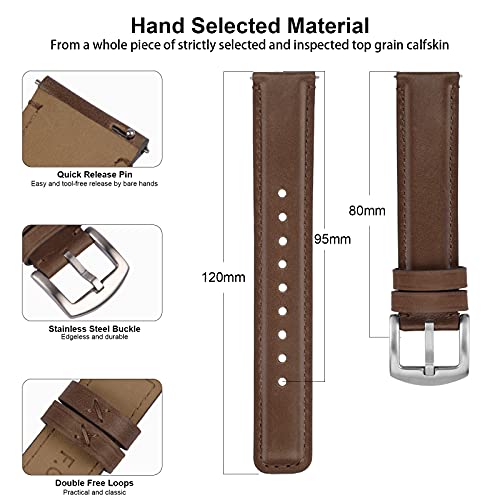 GerbGorb - سوار ساعة من الجلد الطبيعي لساعة سامسونج وفوسيل وجارمين وهواوي الذكية مقاس 18 ملم 20 ملم 22 ملم سريع الفك للرجال والنساء من جربورب