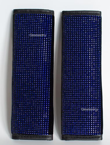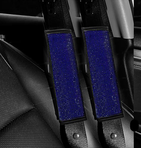 Gewissony - وسادات كتف لحزام أمان مقعد السيارة بلون أزرق لامع أغطية من الكريستال اللامع لديكور للنساء جيويسوني - قطعتين