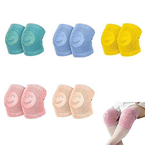 GHEART - واقيات ركبة مخيطة بتصميم وجه مبتسم للاطفال من جي هارت، وسادات ركبة قطن 95% مضادة للانزلاق وقابلة للتعديل وجيدة التهوية, 5 ألوان
