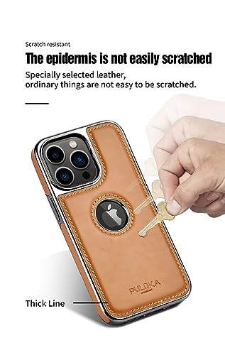 GIGA EG - جراب جلد لموبايل ايفون 14 برو ماكس من بولوكا (بني)، حافظة بسيطة