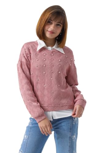 Generic - طقم من 3 قطع للبنات بتفاصيل ياقة بيضاء، بلوفر باكمام طويلة