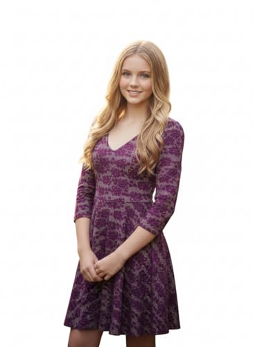 Generic - فستان حفلات شتوي انيق من قماش الجاكار للبنات - فستان مزين بالورود باكمام 3/4 مع سحاب خلفي طويل - للمراهقين وما قبل المراهقين (للاعمار من 10-14 سنة) - (توماس وسبليندور)