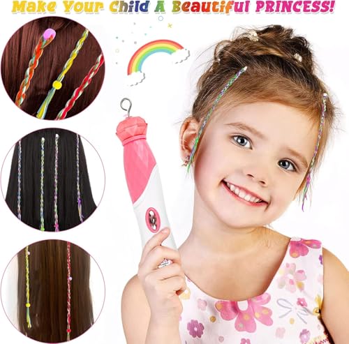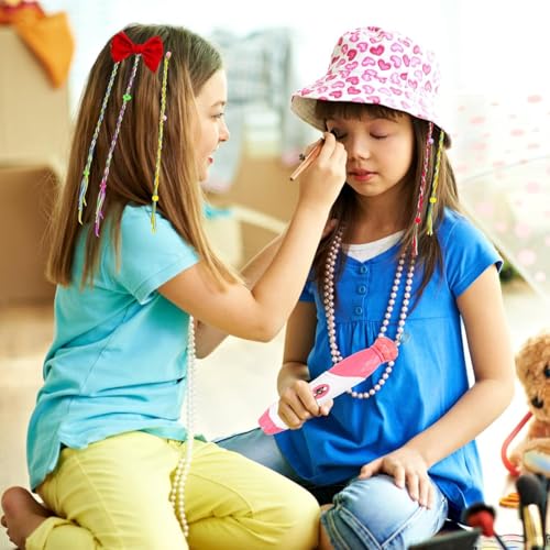 Generic - مجموعة تجديل وتصفيف الشعر للبنات، مجموعة أشرطة الجدائل 2 في 1 وشريط ملفوف مع خرز واكسسوارات، للأعمار من 5 سنوات فما فوق، بلون وردي