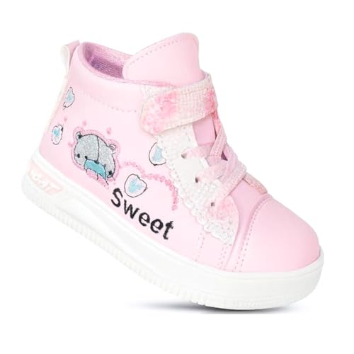 Generic - حذاء رياضي برقبة عالية للبنات، تصميم مطرز، خفيف الوزن ومرن، نعل غير قابل للانزلاق، سهل الارتداء مع دانتيل مطاطي ومزالج (لون Sweet)