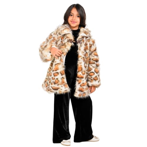 Generic - جاكيت شتوي عصري من الفرو الصناعي بنقشة جلد الفهد للبنات