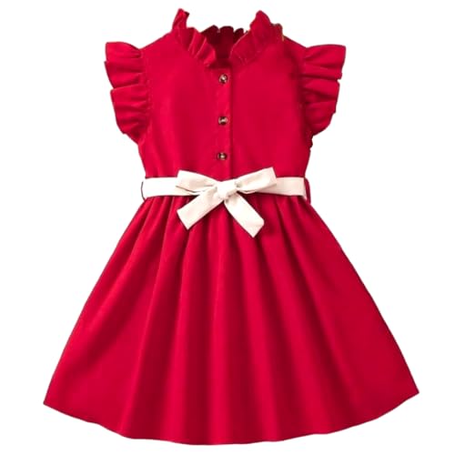 Generic - فستان كاجوال بأكمام مكشكشة وحزام على شكل فيونكة للبنات