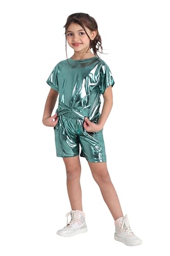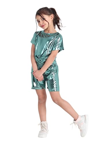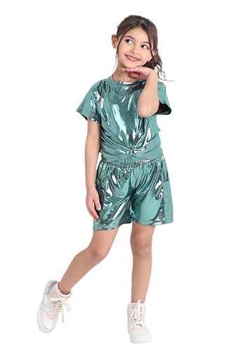 Choice N.C - بيجامة بناتي صيفي ميتاليك تيشيرت أنيق مع شورت خفيف لبس عصري بلمعة ناعمة تصميم جذاب خامة ناعمة بألوان لامعة للبنات Code 2003.