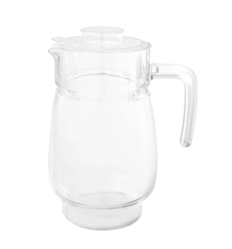 - 1. تصميم أنيق وعصري: شكله الشفاف يضيف لمسة جمالية على طاولة الطعام أو المطبخ. 2. مصنوع من زجاج عالي الجودة: يتحمل الحرارة والبرودة، ومثالي لتقديم المشروبات الساخنة والباردة. 3. غطاء أكريليك محكم الإغلاق: يحافظ على المشروبات طازجة ويحميها من التلوث. 4. سعة كبيرة: 1.6 لتر، مناسب للعائلات أو الاجتماعات. 5. سهولة التنظيف: يمكن تنظيفه بسهولة باستخدام اليد أو وضعه في غسالة الصحون (تحقق من توافقه)