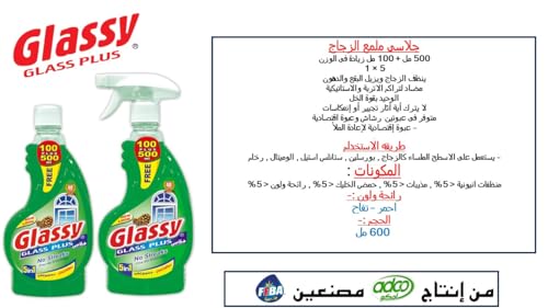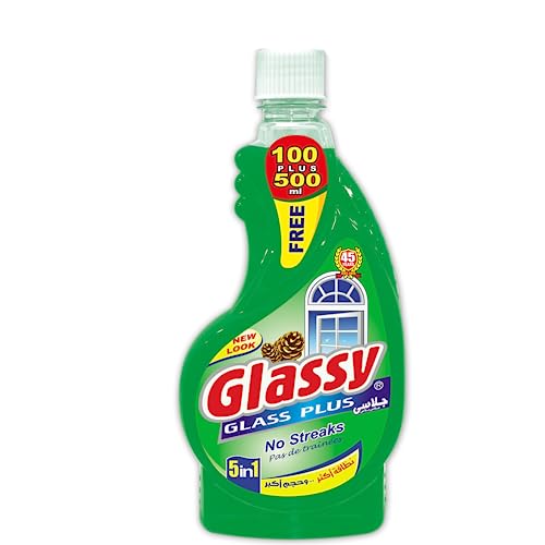 Glassy - منظف نوافذ زجاجي 500 مل + 100 مل قابل لإعادة التعبئة برائحة الصنوبر
