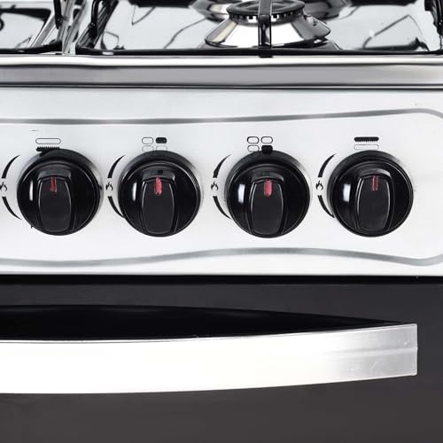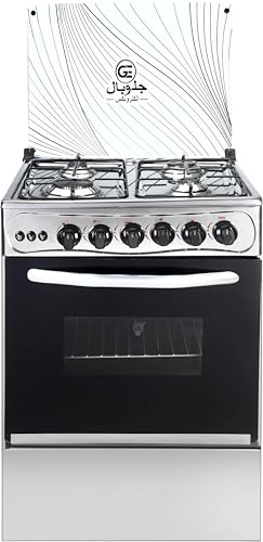 Global - بوتاجاز العالمية 4 شعلات 55 × 55 سم فضي بسطح فولاذ مقاوم للصدأ وإشعال ذاتى ولمبة فرن وشواية بمفتاحين منفصلين للفرن والشواية