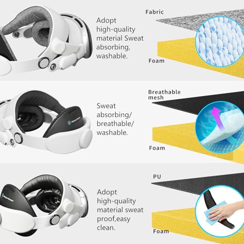 - حل شامل للراحة وتنظيف العرق، يتضمن الطقم 3 مجموعات من الوسادات بمواد مختلفة، جميعها ناعمة ومريحة، لتلبية رغبات المستخدمين المختلفة والمواسم والحالات، وسادة المصنوعة من البولي يوريثان مقاومة للعرق وسهلة التنظيف، بينما الوسادات القماشية تمتص العرق، قابلة للتنفس، وقابلة للغسل.