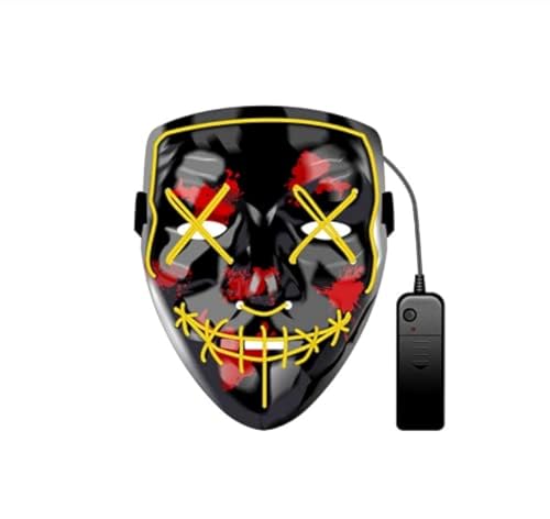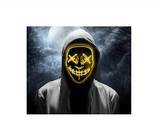 Other - قناع متوهج باضاءة LED للحفلات الراقصة والهالوين، قناع بخط مزدوج للفم، قناع رعب لحفلات الهالوين، دعائم مضيئة باللون الاصفر