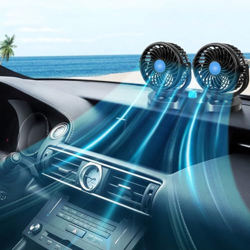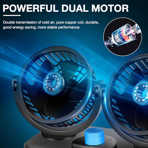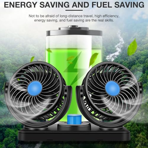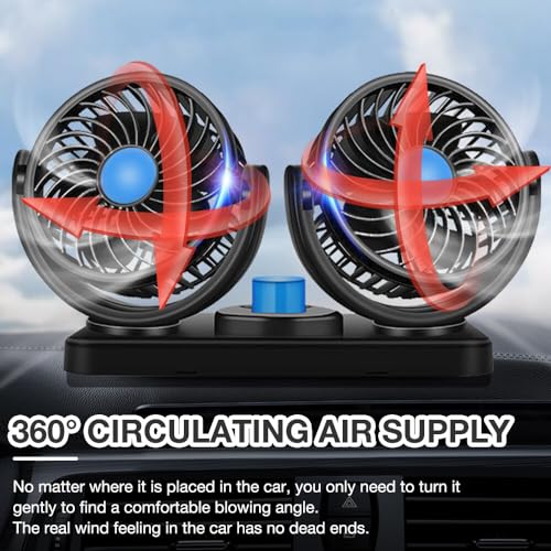 - [مروحة مزدوجة الرأس تدور 360 درجة] مروحة عالية الكفاءة تزيل الرائحة بسرعة وفعالية بسبب دوران قاعدة المروحة بزاوية 360 درجة، تحسن دوران الهواء وتحافظ على الهواء خلال فصل الصيف في المركبات منعشًا وباردًا. إعدادان للسرعة. يمكنك ضبط الزاوية وفقًا لإرادتك.