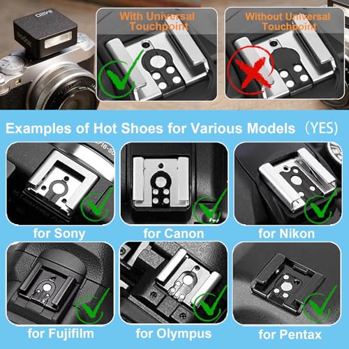 - يرجى ملاحظة أن جهة الاتصال الساخنة لهذه العلامات التجارية الستة للكاميرات يجب أن تتطابق مع الأمثلة الموضحة في الصورة. تأكد من مراجعة أمثلة الاتصال بالحذاء الساخن في الصورة بعناية قبل الشراء لضمان التوافق. تحذير توافق الكاميرا: فلاش يدوي صغير من جودوكس IM20 غير متوافق مع سوني ZV-1F وA9III وA99 وA77 وA350. غير متوافق مع كانون اي او اس ريبيل SL3، 250D، T7، 1500D، 2000D، T100، 3000D، 4000D، 200DII، R7، R6II، R8، R10، R50. غير متوافق مع فوجي X-A3، X100F، X100T. تحقق من "قائمة توافق الكاميرا" في صور المنتج قبل الشراء لضمان التوافق المناسب.
