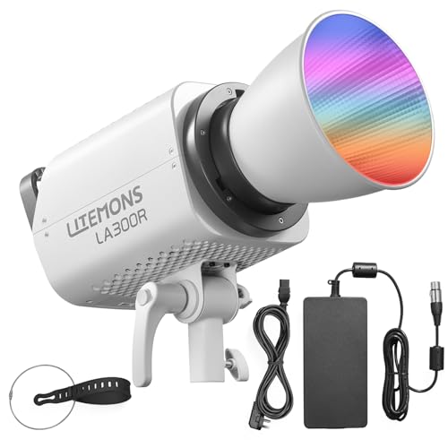 GODOX - مصباح لايتمونز LA300R إضاءة فيديو سي او بي بفضاء لوني RGB، قاعدة تثبيت بوينز، درجة حرارة اللون 1800 كلفن إلى 10000 كلفن مع تعديل جي ام، 94700 لوكس عند 1 م، عاكس قياسي، يدعم تحكم عبر التطبيق من جودوكس