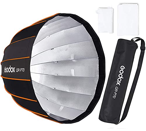 GODOX - صندوق إضاءة سوفت بوكس مكافئ بحامل بوينز من جودوكس، سريع الإعداد وقابل للطي، مع موزع أمامي وداخلي شنطة حمل لـ SL60W VL150 UL150 SL150 SL150II SZ150 وغيرها من مصابيح بحامل بوينز، 70 سم، QR-P70