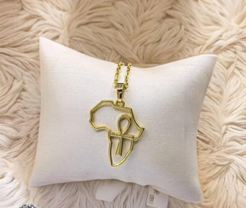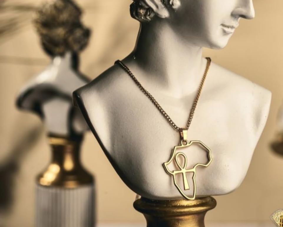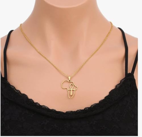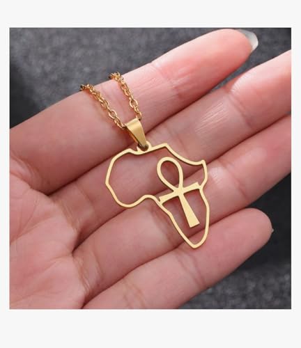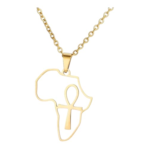 Generic - قلادة ذهبية مع قطعة افريقيا و مفتاح الحياة مجوفة، سلسلة معدنية أنيقة للنساء