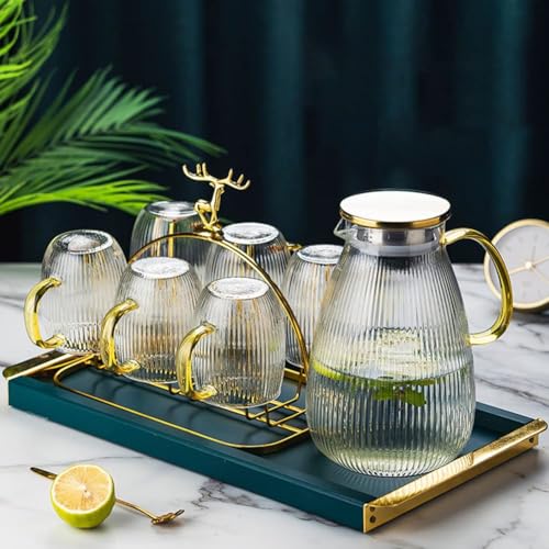 - طقم لوتس جولد يشمل دورق وبراد و4 أكواب بتصميم مميز.