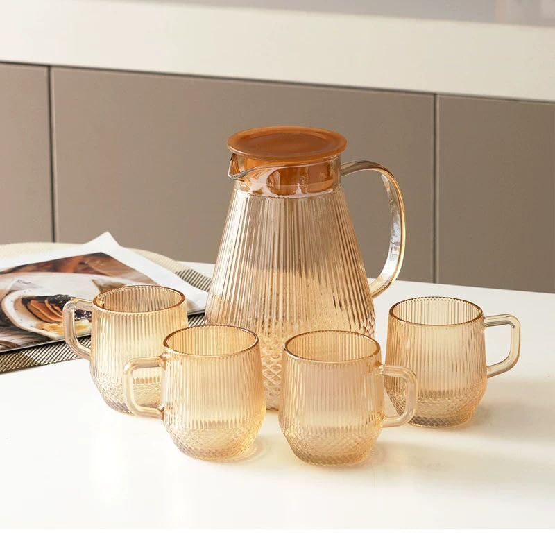 - طقم مكون من 5 قطع تتضمن الدورق والبراد و4 أكواب.