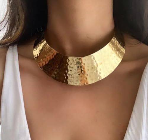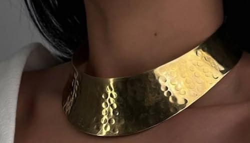 Generic - عقد ضيق من الستانلس ستيل بلون ذهبي، نسيج مطروق، طول قابل للتعديل