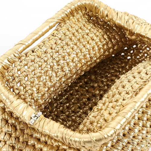 Mr Joe - شنطة يد صغيرة منسوجة بلون ذهبي - 4160
