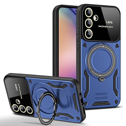 GOLDEN MASK - جراب حماية مزود بحلقة مغناطيسية وواقي عدسة كاميرا لموبايل سامسونج جالاكسي S24 FE من جولدن ماسك، يدعم الشحن اللاسلكي، أزرق، بلاستيك