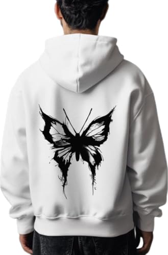 Generic - سترة بقلنسوة على شكل فراشة قوطية خلفية بيضاء