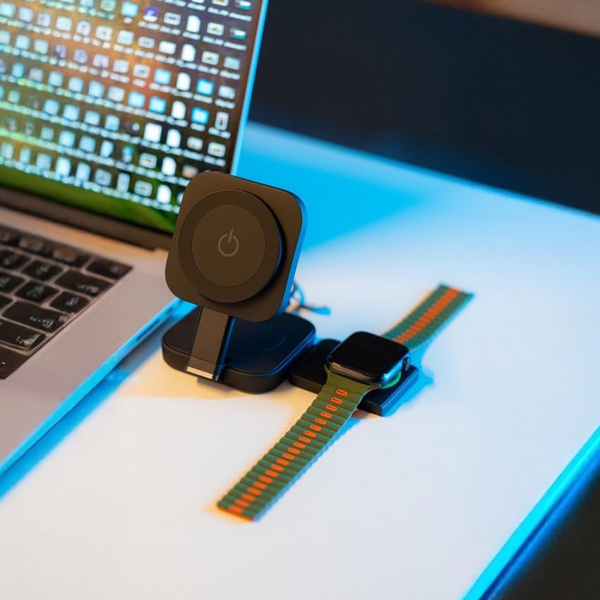 - شاحن لاسلكي متعدد الاستخدامات 3 في 1 يعمل على تشغيل الهواتف الذكية والساعات الذكية وسماعات الأذن في وقت واحد