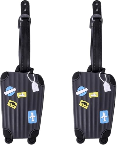 GQ - قطعتان من بطاقة تعريف شنط السفر الفنية مع بطاقة هوية للاسم، ملصقات هوية شخصية، بطاقات سفر مرنة من بلاستيك بي في سي، ملصقات شنط السفر الآمنة، على شكل عربة، أسود