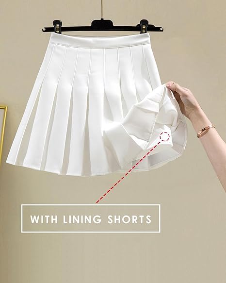 GQ - جيبة تنس مدرسية بقصة ايه لاين مع شورت مبطن بكسرات عالية الخصر للنساء والبنات من جيه كيو