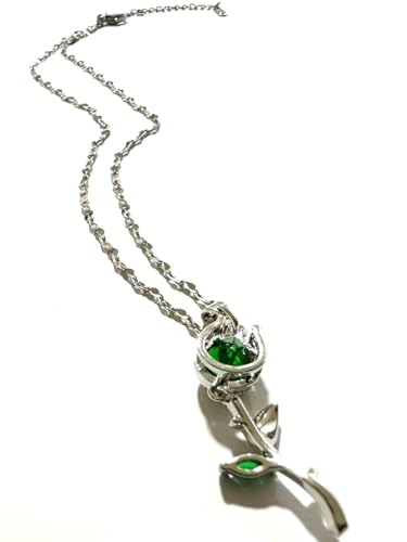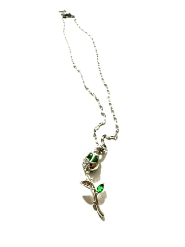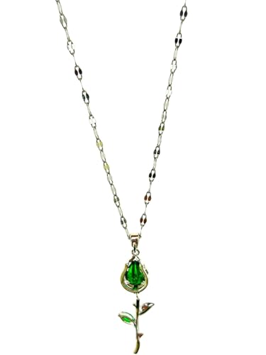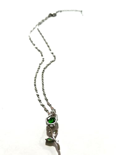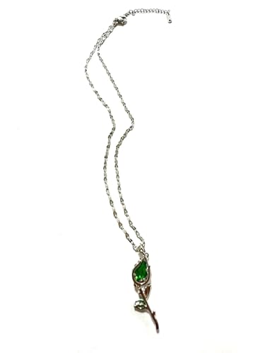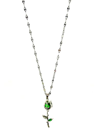 Generic - عقد بتصميم زهرة خضراء - لون فضي، مقاس 40 سم، ستانلس ستيل لجميع المناسبات للنساء