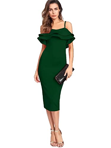 Generic - فستان نسائى اخضر بحمالات من الكتف و مروحة من الصدر