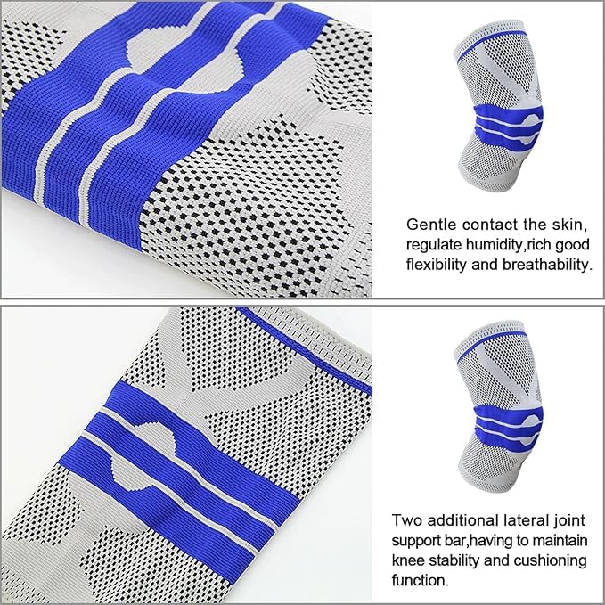 Generic - دعامة ضاغطة للركبة بلون رمادي، وسادة دعم للرجال والنساء، مناسبة للجري ورفع الأثقال والتمارين الرياضية، عبوة واحدة، نسيج مرن مبطن بالسيليكون (رمادي, M)