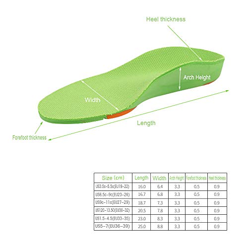 GuardInsoles - نعل داخلي لتقويم العظام للأطفال نعل داخلي للأطفال للقدم المسطحة لالتهاب اللفافة الأخمصية في إصبع القدم مع دعم القوس والكعب الناعم زوج واحد - 14.6 سم